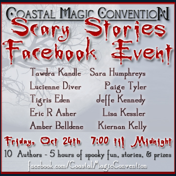 Hi all!!! Later this evening we’ll be having a fantastic Facebook event, full of scary stories and lots of fun, hosted by 10 of our Coastal Magic Convention Featured Authors.