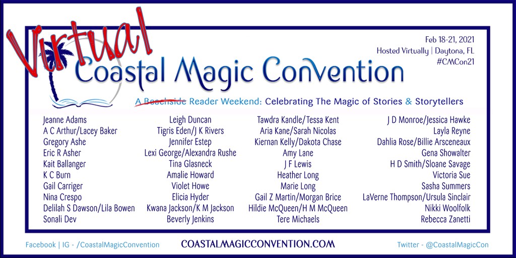In case you’ve missed it — we have finalized our Featured Author listing for #CMCon21! Huge thanks go to all of the authors willing to try this strange new thing with all of us this year. Here is a handy dandy listing of our lineup — be sure to check out the Featured Author tab of this website for more about each author and links to their websites. ❤