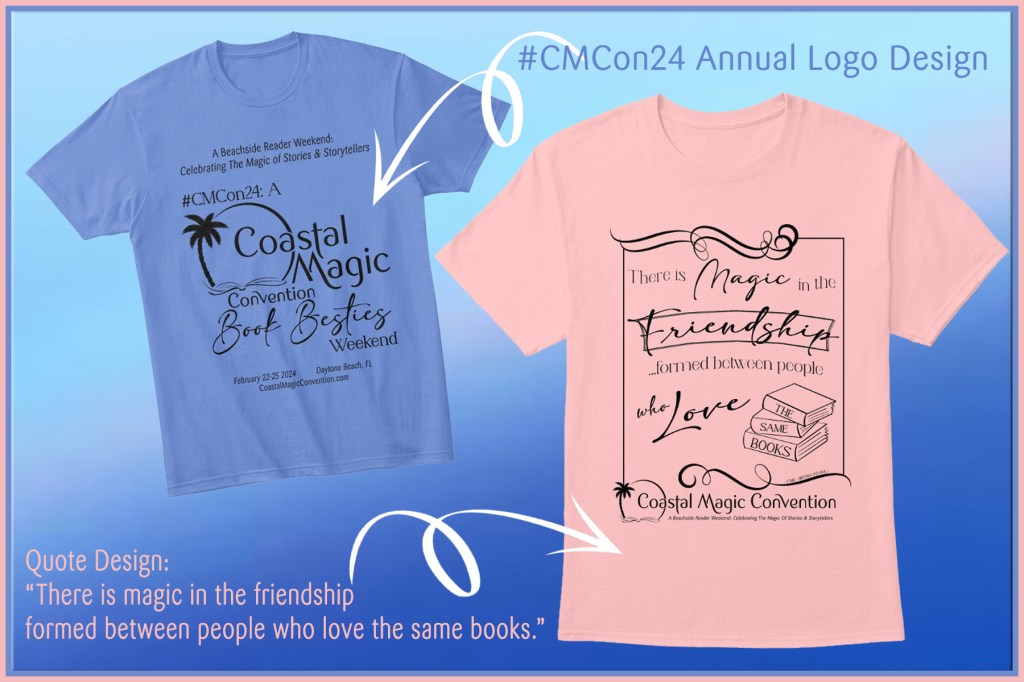 We’ve also got merch!!!! The first two of our three t-shirt designs are now live. The 2024 Reading Challenge design will be revealed soon, so keep your eyes open for that one. 🙂 Right now — we have a collection of items featuring our annual #CMCon24 logo and theme, and our friendship quote design…