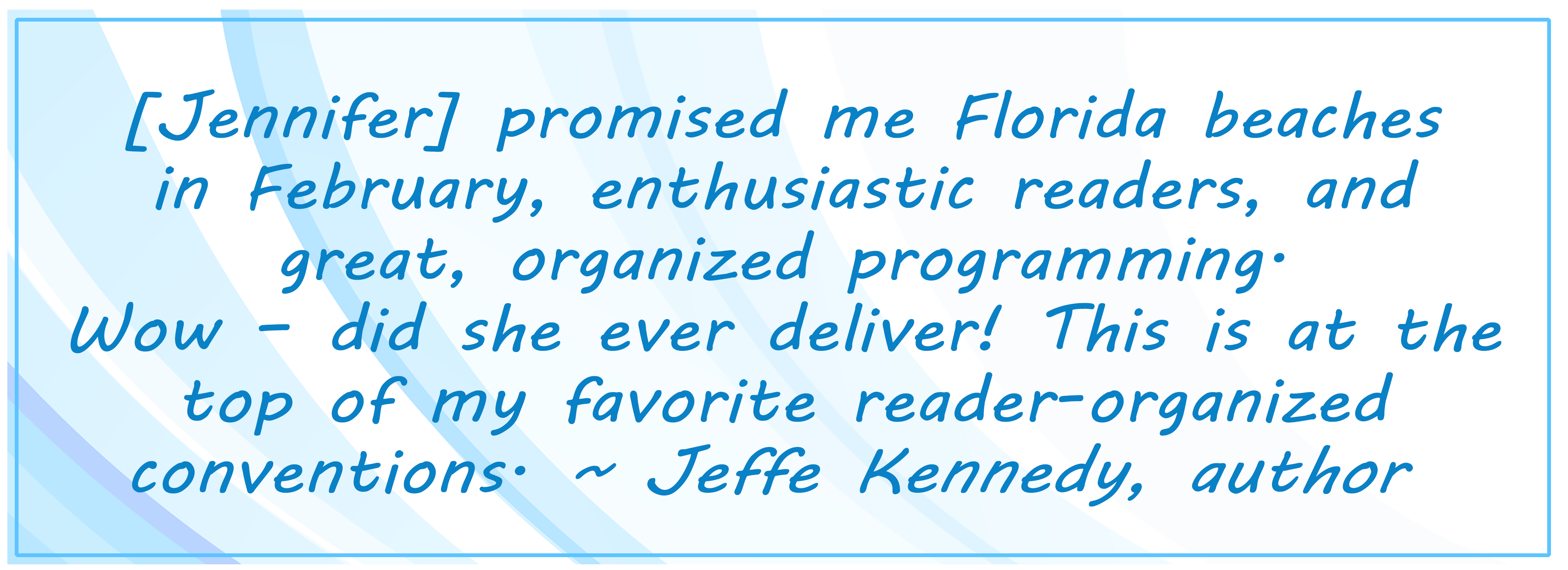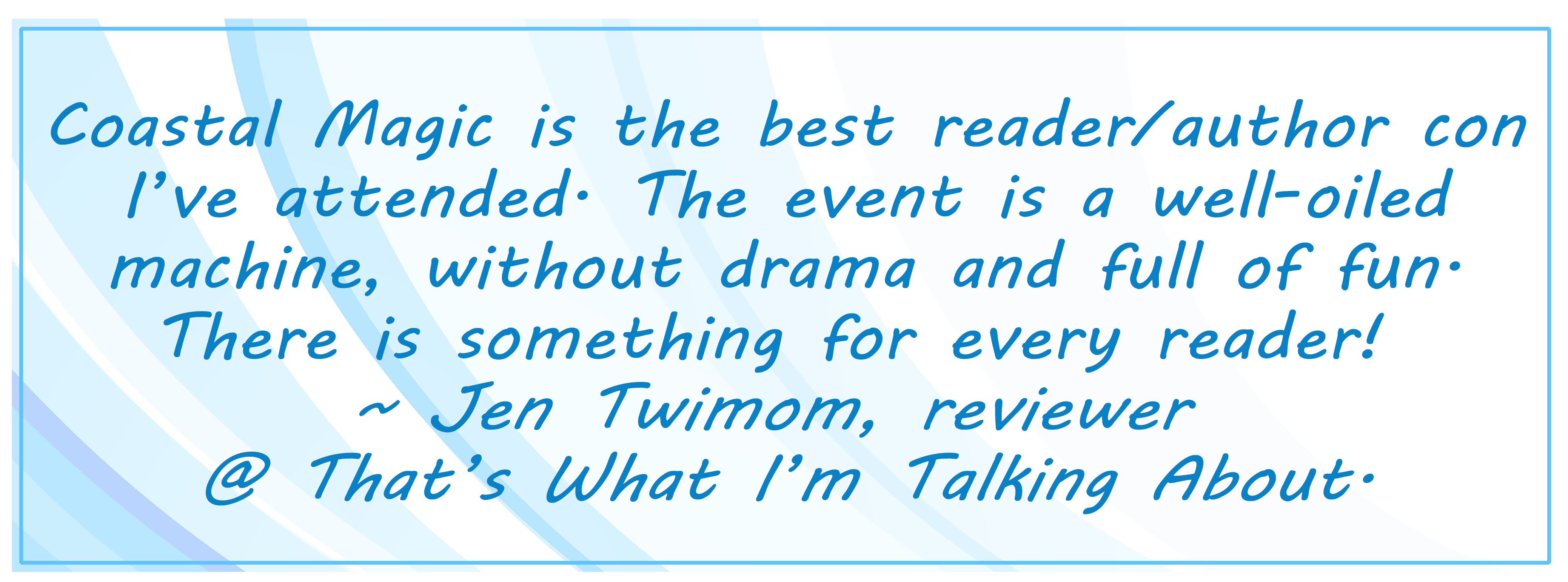 Some of the most amazing things about Coastal Magic are the connections that have been created. Providing a place for authors and readers to connect was always the primary goal of our weekend, and I’ve been amazed at the relationships we (me-individually, and “the convention” as a whole) have made with authors, industry reps, bloggers, and readers. They’ve lasted long after the convention has ended each year.